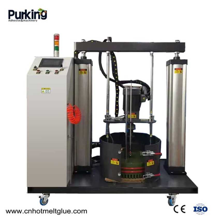 අපගේ ගැලුම් 55 PUR තොග උණු කිරීම ක්රමයෙන් උණුසුම හා ද්රවාංකය භාවිතා කරයි: තාපන තහඩුව මැලියම් වලට ඉහළින් පිහිටා ඇත. උනුසුම් තහඩුව රත් වූ විට, මැලියම් බැරලයේ ඉහළ තට්ටුව පමණක් තාපන තහඩුව හා සම්බන්ධ වී ද්රවාංකය කරා ළඟා වී දිය වේ. තෙග්ලූ බැරලයේ පහළ කොටස මේ අවස්ථාවේ දිය නොවේ. නිෂ්පාදනයේ දී අපට අවශ්ය තරම් දියවී යාමේ අවශ්යතාවය සපුරාලීම සඳහා රබර් බැරලයක මැලියම් දිගු පොට්ලයිෆ් එකක් ඇත: බඳුනේ ආයු කාලය පැය 150 ක් 150 ° C හා දින 3 ක් 90. C දක්වා විය හැකිය. සමාගමේ නිෂ්පාදන පාරිභෝගිකයින්ගෙන් හොඳ පිළිගැනීමක් ලබා ඇත.